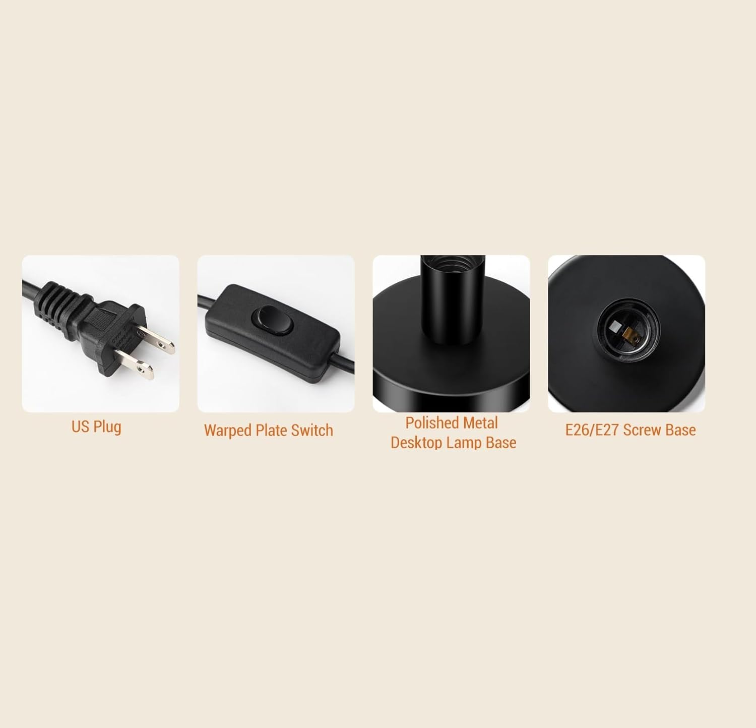 Versatile E26/E27 Socket for Various Bulbs: The table lamp base supports both E26 and E27 bulbs, allowing you to choose from a wide range of lighting options. This versatile lamp base is compatible with different bulb types to suit your lighting needs.