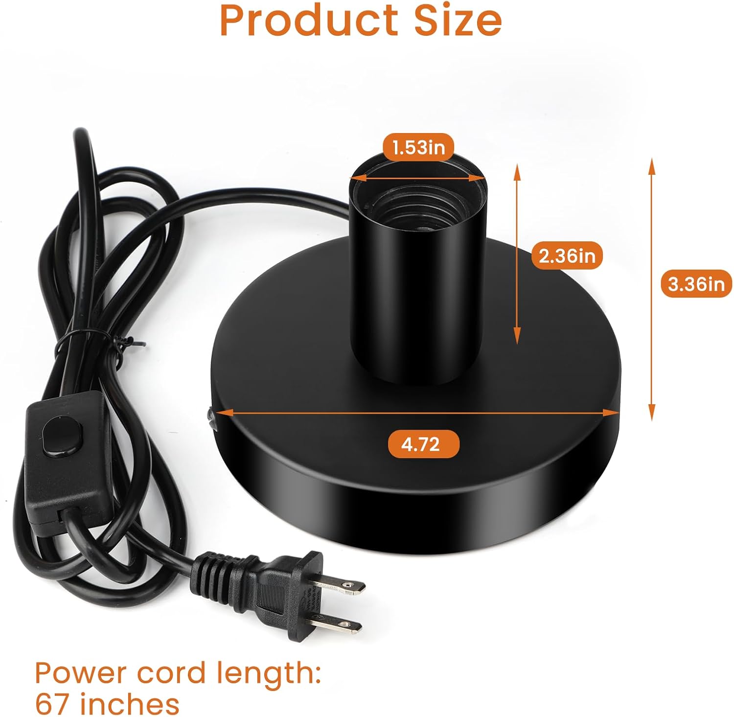 Convenient 67inch Cord with Plug and Switch: Equipped with a 67inch cord, this lamp base offers flexible placement on your desktop or table. The built-in switch and plug make it simple to turn the light on and off without hassle, enhancing ease of use.